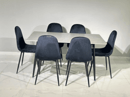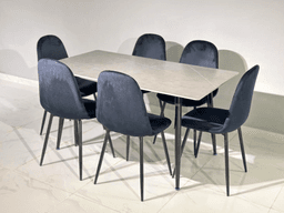 Кухонный стол с керамической поверхностью и 6 чёрно-серых стульев
