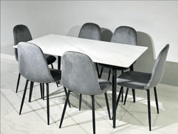 Этот кухонный комплект сочетает в себе чистоту и яркость белой керамической столешницы со сдержанной элегантностью серого каркаса. Керамическая столешница стола отличается исключительной устойчивостью к горячим предметам, царапинам и влаге, обеспечивая максимальное удобство в эксплуатации. Размер 140 x 80 см в комплекте с 6 стульями является оптимальным выбором для небольших и средних семей. Сочетание белого и серого цветов придает пространству четкость, сдержанный стиль и современный вид. Ключевые преимущества: Стильное Сочетание: Комбинация белой керамики и серого каркаса создает современную и светлую атмосферу. Керамическая Столешница: Долговечная и гигиеничная, максимально устойчива к кухонным условиям. Оптимальный Размер (140x80 см): Позволяет разместить 6 человек, обеспечивая удобные посадочные места. Качественные Стулья: 6 стульев гармонируют по стилю со столом, имеют удобную посадку и прочный серый каркас. Ощущение Пространства: Белая столешница и серые тона создают в интерьере ощущение света и воздушности. Уход: Керамическую столешницу протирать влажной тканью. Каркас стульев протирать мягкой тканью.