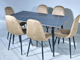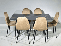 Этот кухонный комплект сочетает в себе строгость черной керамической столешницы с теплотой и мягкостью светло-коричневого (под дерево) каркаса. Керамическая столешница стола отличается исключительной устойчивостью к горячим предметам, царапинам и влаге, обеспечивая максимальное удобство в эксплуатации. Размер 140 x 80 см в комплекте с 6 стульями позволяет с комфортом разместить 6 человек. Сочетание черного и светло-коричневого цветов придает пространству современный контраст, четкость и немного естественной теплоты. Ключевые преимущества: Эффектный Контраст: Черная керамическая столешница и светло-коричневый деревянный каркас создают элегантный вид в стилях модерн и индастриал. Керамическая Столешница: Долговечная и гигиеничная, максимально устойчива к кухонным условиям. Оптимальный Размер (140x80 см): Позволяет разместить 6 человек, обеспечивая удобные посадочные места. Качественные Стулья: 6 стульев гармонируют по стилю со столом, имеют удобную посадку и прочный каркас. Сбалансированность: Коричневый каркас смягчает строгость черной столешницы, создавая более уютную атмосферу. Уход: Керамическую столешницу протирать влажной тканью. Каркас стульев протирать мягкой тканью.