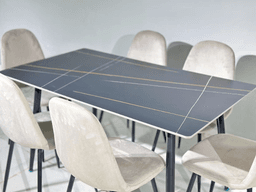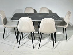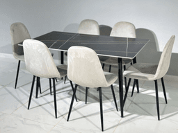 Этот кухонный комплект сочетает в себе строгость черной керамической столешницы с теплотой и мягкостью бежевого каркаса. Керамическая столешница стола отличается исключительной устойчивостью к горячим предметам, царапинам и влаге, обеспечивая максимальное удобство в эксплуатации. Размер 140 x 80 см в комплекте с 6 стульями позволяет с комфортом разместить 6 человек. Сочетание черного и бежевого цветов придает пространству четкий контраст, современный стиль и уютную атмосферу. Ключевые преимущества: Стильный Контраст: Черная керамическая столешница и бежевый каркас/стулья создают сильный дизайнерский эффект, при этом привнося тепло. Керамическая Столешница: Долговечная и гигиеничная, максимально устойчива к кухонным условиям. Оптимальный Размер (140x80 см): Позволяет разместить 6 человек, обеспечивая удобные посадочные места. Уют: Бежевый цвет смягчает строгость черной столешницы, создавая расслабляющую и гостеприимную обстановку для приема пищи. Качественные Стулья: 6 стульев гармонируют по стилю со столом, имеют удобную посадку и прочный каркас. Уход: Керамическую столешницу протирать влажной тканью. Каркас стульев протирать мягкой тканью.