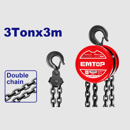 Цепная таль грузоподъемностью 3 тонны — высота подъема 3 м — расстояние между крюками 470 мм — упакована в деревянный ящик Эта мощная цепная таль грузоподъемностью 3 тонны предназначена для интенсивных промышленных подъемных работ. Благодаря высоте подъема 3 метра она идеально подходит для работы с тяжелыми грузами. Она оснащена двумя грузовыми цепями, а расстояние между крюками составляет 470 мм, что обеспечивает эффективную и безопасную работу. Тяговое усилие, необходимое для подъема максимального груза, составляет 404 Н, а масса нетто — 21,5 кг. Таль упакована в деревянный ящик для оптимальной защиты и удобства хранения.