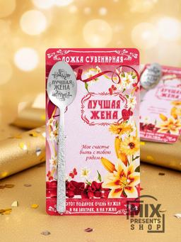 Ложка сувенирная "Лучшая жена" (чайная) на открытке, с красивым пожеланием. Материал: нержавеющая сталь. Метод нанесения: лазерная гравировка. Размер открытки: 10 × 17.5 см Креативный, недорогой а самое главное полезный подарок! На обратной стороне открытки красивое пожелание в виде стихотворения. Такой подарок порадует любого получателя, и будет напоминать о себе долгие годы.