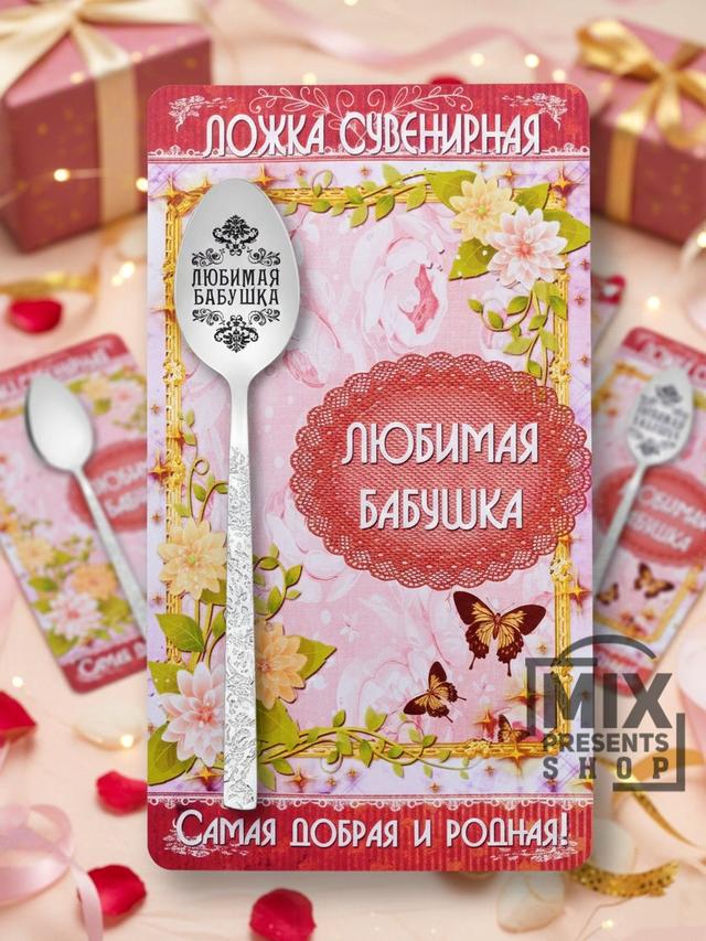 Ложка сувенирная "Любимая бабушка" (чайная) на открытке, с красивым пожеланием. Материал: нержавеющая сталь. Метод нанесения: лазерная гравировка. Размер открытки: 10 × 17.5 см Креативный, недорогой а самое главное полезный подарок! На обратной стороне открытки красивое пожелание в виде стихотворения. Такой подарок порадует любого получателя, и будет напоминать о себе долгие годы.