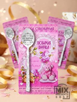 Ложка сувенирная "Любимая внучка" на открытке (чайная)