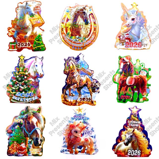 Магнит виниловый "Год лошади" 2026 (7 × 9см) МИКС 1шт. Выбор не предоставляется.