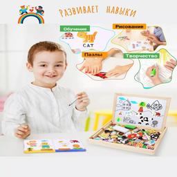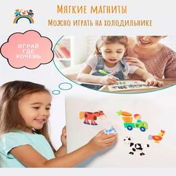 ЛЮБОЙ ребенок от 2 до 5 лет будет СЧАСТЛИВ получить в подарок такую развивающую игрушку для малышей! Она увлекает надолго - ведь в ней есть разные животные, насекомые, деревья, цветы и настоящий Фермер - мальчик на тракторе! Настоящий чудо-чемоданчик! Разный размер магнитиков просто отлично развивает мелкую моторику пальчиков. Также игра развивает логику и усидчивость, ведь представляет собой магнитный пазл. Развиваем творческие способности - подходит для рисования маркером или мелками, дорисовываем элементы, придумываем истории, создаем своих животных и персонажей. Доска двусторонняя, на одной можно рисовать маркером из комплекта, вторая - грифельная. Увлечет всю семью! Дети будут в восторге!!! Отличный подарок для ребёнка , для девочек или мальчиков на день рождения. Подходит для детского сада и раннего развития ребенка по системе Монтессори.