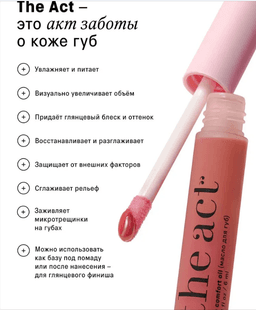 Лёгкое увлажняющее масло-тинт для губ с натуральным розовым оттенком и невесомой текстурой придаёт губам естественный глянцевый блеск и мягкий цвет. Визуально увеличивает, интенсивно ухаживает за нежной кожей, разглаживает и восстанавливает, оставляя губы увлажнёнными, мягкими и гладкими. -увлажняет и питает -восстанавливает и разглаживает -защищает от внешних факторов -можно использовать как базу под помаду или для глянцевого финиша Аромат Цветочный Объём 6 мл
