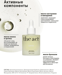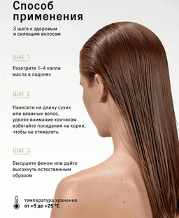 Лёгкое масло-сыворотка увлажняет и смягчает волосы, восстанавливает гладкость, защищает от негативного воздействия окружающей среды, повышая эластичность и придавая здоровый блеск. — восстанавливает структуру — создаёт эффект экстрапитания и увлажнения — придаёт мягкость и блеск — разглаживает волосы и облегчает расчёсывание — защищает от термического воздействия — интенсивное увлажнение и питание волос — уменьшение пушистости и спутывания — легкость укладки и расчесывания — придает здоровый блеск и мягкость Объём: 50 мл