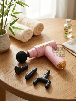 Массажёр перкуссионный для тела с 4 насадками Pink