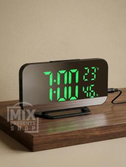 Электронные часы зеркальные LED - будильник (дата, температура, влажность))
