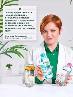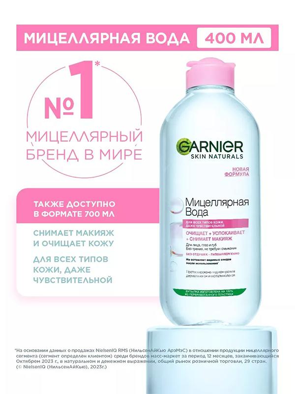 Характеристики Объем: 400ml Описание Если вы ищете эффективное, быстрое и комфортное средство для снятия макияжа, попробуйте Мицеллярную Воду от Garnier. Она эффективно снимает макияж, очищает кожу лица, заметно успокаивая даже чувствительную кожу. Формула Мицеллярной воды обогащена: • Мицеллами, активными очищающими частицами, которые притягивают макияж и загрязнения как магнит, а затем легко удаляются при помощи ватного диска без лишнего трения. • Глицерином растительного происхождения, активным компонентом, увлажняющим кожу. Способ применения Смочите ватный диск водой и бережно без лишнего трения, очистите кожу лица, глаза и губы. Средство не требует смывания.