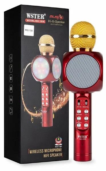 Микрофон караоке с динамиком WS-1816 — универсальный гаджет для тех, кто любит петь, танцевать и веселиться. Устройство можно брать с собой на отдых, в поездку и на пикник. Некоторые особенности микрофона: Беспроводная связь по Bluetooth. Устройство совместимо с телефонами на Android и iOS. Трехуровневое подавление уровня шума в головке микрофона, направленный микрофон. Проигрывает музыку со смартфона и позволяет петь под неё, записывая свои композиции (встроенный слот для карты памяти для записи музыки в формате MP3). Возможность регулировать звуковой эффект реверберации голоса (эхо), удобное расположение кнопок для регулировки режимов. Яркая светодиодная подсветка динамиков (при желании отключается). Можно использовать как обычную портативную колонку для проигрывания музыки со смартфона или планшета. Модель имеет разъём для подключения наушников (удобно для людей, занимающихся вокалом). Прочный пластиковый корпус защищён от ударов и падений, способствует высокому качеству звучания и лучшим басам. Широкий спектр применения: для пикника, поездки, громкоговорителя, вечеринки, семейных развлечений, пения караоке и т. д
