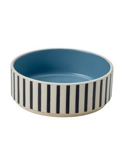 Эта миска для домашних животных изготовлена из прочного и устойчивого материала. Полосатый узор в черно-серо-голубых тонах легко вписывается в интерьер. Диаметр чаши — 11 см, что делает её удобной для мелких и средних питомцев. Подходит как для корма, так и для воды. Легко чистится.