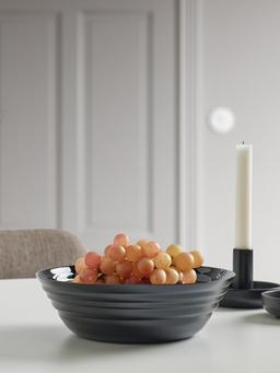 Эта чёрная миска диаметром 22 см подходит для различных блюд. Стильный и современный дизайн украсит любой обеденный стол.