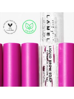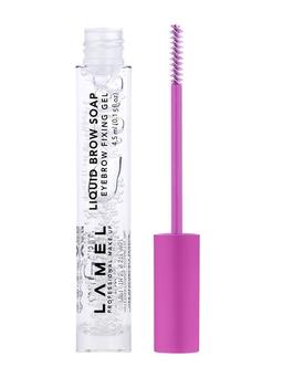 Характеристики Объем: 4.5ml Описание Liquid Brow Soap бренда Lamel – это инновационное средство, которое придает модному эффекту густых бровей, помогает легко смоделировать идеальную форму и справиться с непослушными волосками. Гель-мыло прозрачен, поэтому подойдет под любой макияж и оттенок бровей. Средство фиксирует волоски в нужном направлении, не склеивает их и не создает «мокрого» эффекта. Удобная щеточка позволяет легко наносить и распределять мыло-гель четко по контуру, придавая желаемую форму. Продукт не тестировался на животных. Способ применения Гель наносят на брови с помощью специальной щеточки, которой укомплектован тюбик. Использовать косметическое средство можно соло или поверх нанесенных теней, карандаша. Небольшое количество геля наберите на щеточку и аккуратно причешите брови в нужном направлении. Уже через 1-2 минуты средство подсохнет, сохраняя заданную волоскам форму.