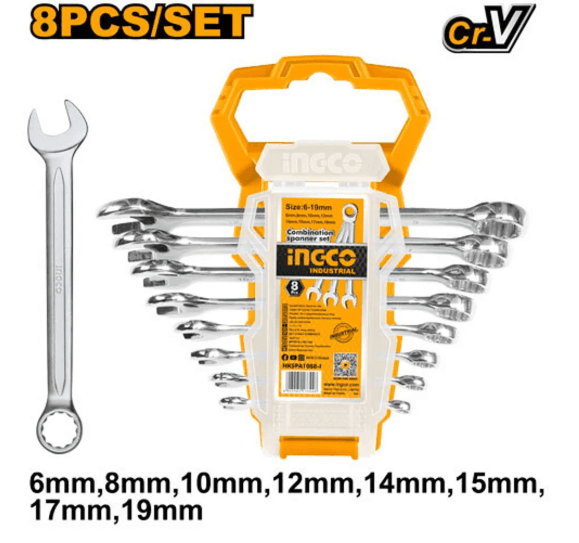 Набор комбинированных ключей 8шт Размер: 6-19мм 6мм, 8мм, 10мм, 12мм, 14мм, 15мм, 17мм, 19мм Хорошая полировка Упаковка: пластиковый подвес
