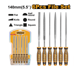 Набор надфилей INGCO HKTF63 6 шт. 140 мм применяется для тонкой обработки изделий. Инструменты подходят для опила плоских и вогнутых поверхностей, пазов, фасок, кромок и выступов, а также обрезки заусенцев. В наборе напильники плоской, полукруглой, круглой, треугольной, квадратной и ножевидной формы. Тип товара: Набор надфилей 6шт. Общая длина: 140 мм Рабочая длина: 95 мм Диаметр стержня: 3 мм Форма: плоский/полукруглый/круглый/трехгранный/квадратный и ножевидной формы Алмазное напыление: нет Упакован: двойной блистер Вес: Брутто - 0,1 кг. Параметры упакованного товара: Длина - 22 см, Ширина - 13 см, Высота - 2 см