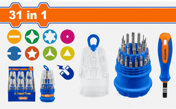 Компактный и универсальный набор, идеально подходящий для точных работ с электроникой, бытовой техникой и мелкими деталями. Многофункциональность: В комплект входит широкий ассортимент сменных бит различных типов (плоские, крестовые, Torx и др.). Эргономичная рукоятка: Удобная ручка с прорезиненным покрытием обеспечивает надежный хват и комфорт при длительном использовании. Удобное хранение: Компактный круглый держатель позволяет упорядоченно хранить все биты в одном месте и быстро находить нужный размер. Портативность: Легкий и малогабаритный набор, который удобно брать с собой или хранить в ящике стола.