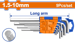 Набор из 9 шестигранных ключей Материал: Cr-V Размеры: 1,5 мм, 2 мм, 2,5 мм, 3 мм, 4 мм, 5 мм, 6 мм, 8 мм, 10 мм. Длинная рукоятка Термообработка и хромированное покрытие Упаковка: картонная коробка