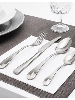 Набор столовых приборов из 24 предметов из нержавеющей стали. В комплект входят 6 ложек, 6 вилок, 6 ножей и 6 чайных ложек. Прочный и лёгкий материал подходит для ежедневного использования и праздничной сервировки. Можно мыть в посудомоечной машине, блеск сохраняется надолго.