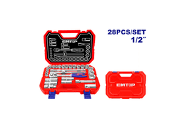 Набор торцевых головок EMTOP, состоящий из 28 предметов с посадочным размером 1/2 дюйма, является профессиональным комплектом для ремонта автомобилей и техники. Все элементы изготовлены из высококачественной, термически обработанной хромванадиевой стали (CR-V 50BV30), что гарантирует высокую прочность и долговечность. В набор входит 45-зубцовый ключ-трещотка, широкий ассортимент стандартных и глубоких шестигранных головок (10–32 мм), а также все необходимые аксессуары для работы в труднодоступных местах. Комплект упакован в прочный кейс BMC (Bulk Moulding Compound). Комплектация (28 предметов): Ключ-трещотка: 1 шт., 1/2 дюйма, 45 зубцов Стандартные головки 1/2 дюйма: 18 шт. (10, 11, 12, 13, 14, 15, 16, 17, 18, 19, 20, 21, 22, 23, 24, 27, 30, 32 мм) Глубокие шестигранные головки 1/2 дюйма: 3 шт. (13, 17, 19 мм) Головки для свечей зажигания: 2 шт. (16 мм и 21 мм) Удлинители 1/2 дюйма: 2 шт. (125 мм и 250 мм) Карданный шарнир: 1 шт., 1/2 дюйма Скользящая Т-образная головка: 1 шт., 1/2 дюйма x 250 мм Материал и упаковка: Материал: CR-V (50BV30), термообработанная Упаковка: BMC кейс