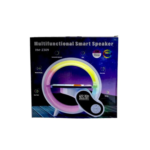 Настольная смарт-лампа (ночник) G-Smart HM-2309, многофункциональное устройство, которое объединяет в себе несколько функций, часто описываемых как "7 в 1". Беспроводная Bluetooth-колонка: Подключается через Bluetooth (версия 5.2 или новее) для воспроизведения музыки или аудиоконтента с телефона или планшета. Также поддерживает воспроизведение с USB-накопителей и карт памяти TF, а некоторые версии имеют функцию FM-радио. Беспроводное зарядное устройство (15 Вт): Оснащено верхней панелью для беспроводной зарядки, совместимой со всеми телефонами, поддерживающими стандарт Qi (например, iPhone, Android). RGB-ночник/Атмосферная лампа: Имеет встроенную светодиодную RGB-подсветку с 256 различными режимами и возможностью светомузыки (подсветка переливается под звуки музыки). Часы и будильник: Встроенные цифровые часы и функция будильника с настраиваемыми мелодиями и цветом света. Термометр и календарь: В некоторых версиях включает отображение температуры и даты. Управление через приложение: Основными функциями можно управлять через специальное приложение на смартфоне, например, Smart NightLight APP. Также поддерживается кнопочное управление на корпусе. Функция Hands-Free: Возможность принимать телефонные звонки через встроенный микрофон и динамик при подключении телефона по Bluetooth. Белый шум: Некоторые модели имеют функцию воспроизведения "белого шума" для улучшения сна. Безопасность: Включает защиту от перегрузки, перенапряжения, перегрева и обнаружения посторонних предметов.