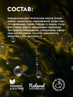Натуральное мыло "Для бани и сауны" с экстрактами водорослей и композицией эфирных масел хорошо очищает кожу, тонизирует и смягчает. Комплекс водорослей Черного моря — натуральный источник минералов, витаминов и аминокислот. Водоросли тонизируют и увлажняют кожу, улучшают кровообращение, оказывают противовоспалительное действие. Состав: омыленные растительные масла (оливковое, кокосовое, касторовое), вода подготовленная, грязь Сакского озера, голубая глина, масло зародышей пшеницы, экстракты ламинарии, спирулины, эфирные масла кедра, пачули, эвкалипта, морская соль, витамин Е.