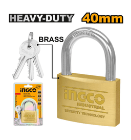 Навесной латунный замок INGCO DBPL0402 INDUSTRIAL 40 мм Материал - латунь В комплекте 3 ключа Вес: Нетто - 0,142 кг, Брутто - 0,18 кг. Параметры упакованного товара: Длина - 14 см, Ширина - 10 см, Высота - 3 см