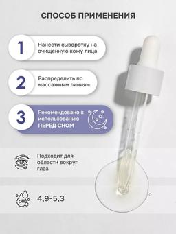 Ночное восстановление и омоложение для всех типов кожи. Сыворотка на основе гидролата василька тонизирует, снимает следы усталости, уменьшает отёчность и разглаживает морщины, возвращая коже сияние и упругость. Рекомендуется с 25 лет. Что делает: — Уменьшает отёчность и следы усталости — Разглаживает морщины и повышает упругость кожи — Укрепляет капилляры и улучшает цвет лица — Стимулирует клеточное обновление и увлажнение Ключевые компоненты: 🔸 Экстракт черники — борется с дряблостью, восстанавливает коллаген, укрепляет сосуды 🔸 Гидролат василька — тонизирует, снимает отёки, улучшает цвет лица 🔸 Экстракт хвоща — улучшает кровообращение, предотвращает сосудистую сеточку 🔸 Экстракт фиалки — повышает уровень гиалуроновой кислоты, увлажняет 🔸 Экстракт моркови — разглаживает морщины, возвращает тонус Особенности: ✔️ 100% натуральный состав ✔️ Подходит для всех типов кожи, включая чувствительную ✔️ Идеально для ночного ухода ✔️ Рекомендуется с 25 лет Способ применения: Нанести 2–3 капли на очищенную кожу лица, распределить лёгкими движениями. Использовать вечером перед нанесением крема. Предупреждение: Возможна индивидуальная непереносимость ингредиентов. Состав: Aloe Barbadensis Leaf Juice* (Алоэ вера гель), Centaurea Cyanus Flower Water (Водный экстракт василька), Aqua (Вода), Glycerin (Глицерин), Pentylene Glycol (Растительный пентиленгликоль), Xanthan Gum (Ксантановая камедь), Benzyl Alcohol (Бензиловый спирт), Vaccinium Myrtillus Fruit Extract (Экстракт черники), Tocopherol (Комплекс токоферолов), Beta-Sitosterol (Бета-ситостерол), Squalene (Сквален), Sodium Hyaluronate (Гиалуронат), Melaleuca Alternifolia Leaf Oil (Эфирное масло чайного дерева), Mentha Arvensis Herb Oil (Эфирное масло мяты), Cananga Odorata Oil (Эфирное масло иланг-иланг), Benzoic Acid (Бензойная кислота), Laminaria Extract (Экстракт ламинарии), Viola Tricolor Extract (Экстракт фиалки), Melilotus Officinalis Herb Extract (Экстракт донника), Daucus Carota Sativa Seed Extract (Экстракт моркови), Equisetum Arvense Extract (Экстракт хвоща), Rubur Idaeus Extract (Экстракт малины), Mains Domestica Borkh Extract (Экстракт яблока), Vitis vinifera Extract (Экстракт виноградной косточки), Punica Granatum Extract (Экстракт гранатовой косточки), Viburnum Opulus Extract (Экстракт калины), Benzyl Benzoate, Linalool, Benzyl Salicylate, Geraniol, Limonene.