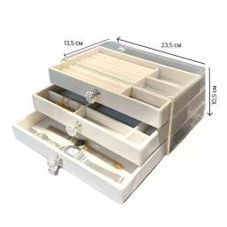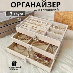 Органайзер для украшений — это элегантный и функциональный аксессуар, который обеспечивает бережное хранение ваших драгоценностей и бижутерии, предотвращая их спутывание и повреждение. Краткое описание: Назначение: Предназначен для систематизированного хранения колец, серег, цепочек, браслетов и часов в одном месте. Материал: Внешняя отделка из качественной экокожи или текстиля, а внутренняя поверхность выполнена из мягкого бархата или велюра для защиты украшений от царапин. Конструкция: Продуманное внутреннее пространство с отдельными ячейками, специальными валиками для колец, перфорированными панелями для серег и крючками для подвесок. Безопасность: Защищает изделия от воздействия солнечного света, пыли и влаги, помогая сохранять их первоначальный блеск. Компактность: Благодаря лаконичному дизайну органайзер занимает минимум места на туалетном столике и идеально подходит для поездок.