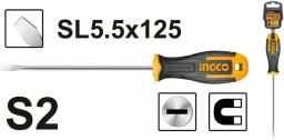Отвертка с прямым шлицем применяется для различных работ с крепежом. Хвостовик цилиндрической формы, выполнен из хромованадиевой стали. Размер шлица: 5.5 мм. Диаметр хвостовика: 5 мм. Длина стержня: 100 мм.
