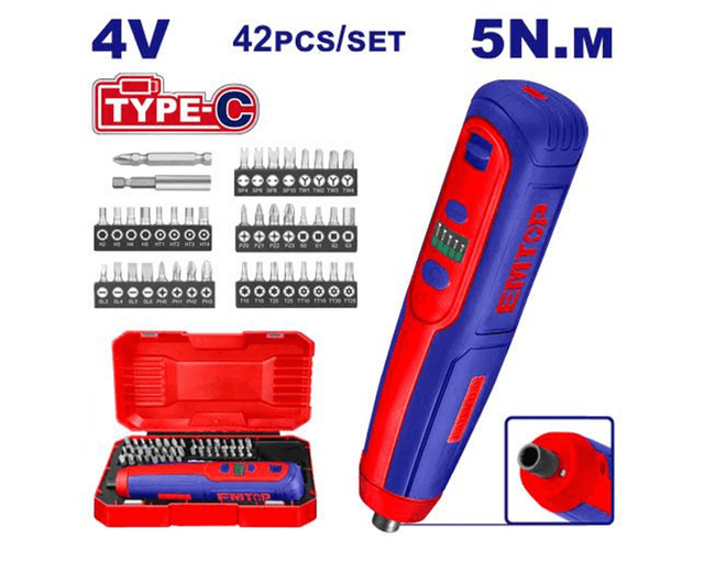 Аккумуляторная отвертка Emtop с напряжением 4 В представляет собой полупрофессиональный инструмент, который идеально подходит для выполнения различных задач в домашних условиях. Она оснащена щеточным двигателем и шестигранным хвостовиком 6.35 мм (1/4"), что обеспечивает надежное крепление насадок. Максимальный крутящий момент в 5 Нм позволяет эффективно справляться с задачами средней сложности. Скорость холостого хода составляет 260 об/мин, что обеспечивает быструю и эффективную работу. Отвертка имеет встроенный аккумулятор типа Li-Ion, что исключает необходимость частой замены батарей. Компактная и легкая конструкция с весом всего 0.72 кг делает инструмент удобным в использовании и транспортировке. Упакована в удобный чемодан/кейс, что облегчает хранение и переноску.