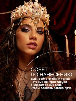 Характеристики Цвет: №01 Объем: 12gr Описание Палетка теней ARCANE DU DESTIN от VIVIENNE SABÓ — палитра образов и настроений, которые можно выразить с помощью одного продукта. С палеткой из 12 оттенков ты сможешь создать множество цветовых сочетаний: тени-спарклы в шести сияющих тонах от нежно-розового до аметистового добавят таинственного и чарующего блеска глазам, а шесть базовых матовых оттенков с акцентами винного, темно-сливового и черного графитового цвета сделают взгляд глубоким и завораживающим. Тени с высокой пигментацией удобно растушевывать и легко наслаивать друг на друга. С ними ты создашь стойкий макияж и будешь уверена в своей неотразимости на протяжении целого дня. Какая карта выпадет тебе сегодня? Загадочная, но уверенная в себе Верховная Жрица или яркая и идейная натура Императрицы. Вдохновляющая и харизматичная Королева жезлов или женственная и чувственная Королева кубков. С палеткой теней ARCANE DU DESTIN ты сможешь создать макияж глаз, отражающий твои внутренние ощущения. Способ применения Нанесите светлые оттенки во внутренний уголок глаза. Тени более ярких тонов растушуйте в складке подвижного века и у внешнего уголка глаза. Создайте мягкие переходы с помощью кисти. Сияющие тени нанесите на середину века подушечками пальцев.