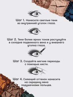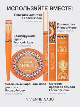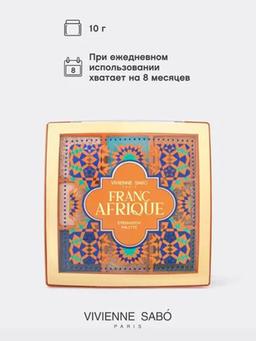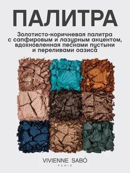 Характеристики Цвет: №01 Объем: 10gr Описание Посреди беспощадного зноя марокканской пустыни, где песок, словно раскаленное море, простирается до самого горизонта, неожиданно открывается оазис — как мираж, укрытый в сердце этой стихии. В тени стройных пальм чьи зеленые кроны дрожат от легкого дуновения ветра, все будто замерло в вечной гармонии с природой. Палетка теней FRANÇAFRIQUE от VIVIENNE SABÓ станет ее идеальным отражением. В палитре представлены девять тонов: светло-бежевый, лазурный, хромовый зеленый с матовым финишем, золотистые спарклы и акцентный сапфировый с сиянием. Цветовая гамма передает все оттенки песков пустыни и переливов оазиса. Текстура теней невероятно мягкая, как вечерний африканский воздух, и пигментированная, что позволяет создавать как полупрозрачный, так и насыщенный цвет. Три оттенка в палетке украшены эмбоссингом, напоминающим листья пальмы. С помощью палетки теней ты сможешь создать макияж глаз, который придаст взгляду неповторимую яркость, а образу — самобытность и выразительность. Способ применения С помощью кисти наносите и растушевывайте тени на веках. Сияющие тона можете добавлять подушечками пальцев. Для более стойкого и яркого финиша используйте консилер или жидкие тени в качестве базы.