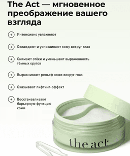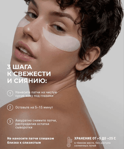 Патчи глубоко увлажняют, успокаивают, а также защищают и восстанавливают нежную кожу вокруг глаз. Благодаря активному комплексу с антиоксидантами, продукт осветляет кожу, уменьшает отёчность и тонизирует. — Мгновенно увлажняют — Осветляют тёмные круги — Снимают отёчность — Оказывают охлаждающий и успокаивающий эффекты — Разглаживают мелкие морщинки — Два размера для применения на разных зонах лица — Экологичный и перерабатываемый тканевый материал — Плотно прилегают и не смещаются в упаковке 80 шт