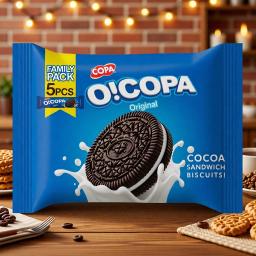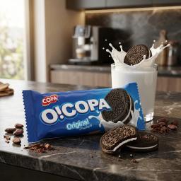 Печенье Copa "Original" с какао и кремовой начинкой, 90 г Насладитесь классическим вкусом Copa "Original"! Это хрустящее сахарное печенье, обогащенное отборным какао, с нежной и тающей во рту молочно-кремовой начинкой. Идеальный баланс насыщенного шоколадного вкуса и мягкой сладости делает его отличным дополнением к чаю, кофе или стакану холодного молока. Компактная упаковка 90 г удобна для перекуса на работе, в школе или в дороге. Основные характеристики: Вкус: Насыщенное какао с ванильно-сливочным кремом. Текстура: Хрустящая снаружи, нежная внутри. Вес: 90 г. Состав: Пшеничная мука, сахар, растительные жиры, какао-порошок, сухое обезжиренное молоко, разрыхлитель, эмульгатор (лецитин), ароматизатор ванилин. Энергетическая ценность: ~480 ккал на 100 г.