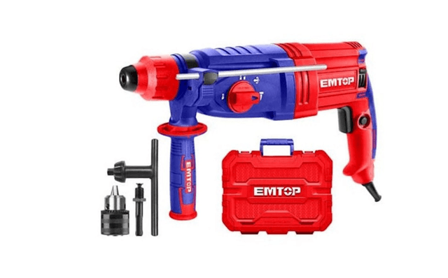 EMTOP ERHRL951 — мощный электрический перфоратор с патроном SDS-Plus, предназначенный для сверления, ударного сверления и долбления в различных материалах. Оснащён системой быстрозажимного патрона для удобной смены оснастки. Идеален для профессионалов и домашних мастеров, выполняющих строительные и ремонтные работы. Основные характеристики: Тип двигателя: электрический Напряжение: 220–240 В ~ 50/60 Гц Входная мощность: 950 Вт Скорость без нагрузки: до 1050 об/мин Частота ударов: до 4670 уд/мин Энергия удара: 2,5 Дж Макс. диаметр сверления: бетон — 28 мм дерево — 30 мм металл — 13 мм Патрон: SDS-Plus Режимы работы: сверление, ударное сверление, долбление