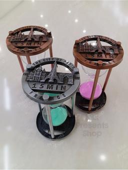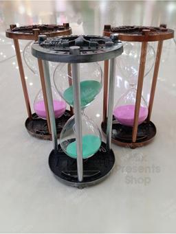 Песочные часы прекрасное украшение для гостиной, спальни, кабинета или офиса. Фигура изготовлена из металла, минерального стекла и декоративного цветного песка, что станет отличным элементом интерьера для дома, дачи, детской комнаты . Высота 16,5 см Цикл 15 минут Цвет: микс