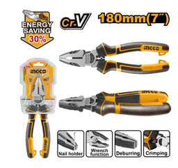 Размер: 7"/180мм Материал: Cr-V Черная отделка и полировка Рукоятка 2-х цветная из TPR пластика Экономят 30% силы чем обычные плоскогубцы Упаковка: полипропиленовый подвес