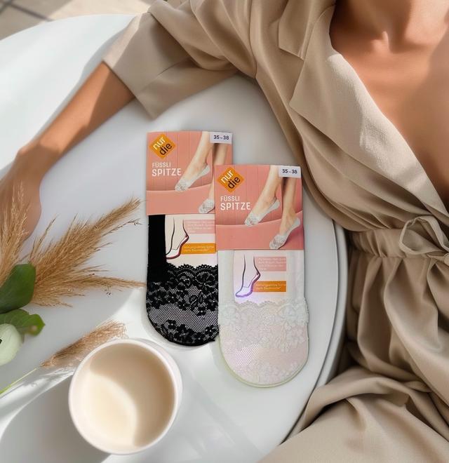 Подследники кружевные с хлопковой подошвой и силиконовой лентой для поддержки пятки . Цвета: черный, белый Размер: 35-38, 39-42 Сделано в Германии