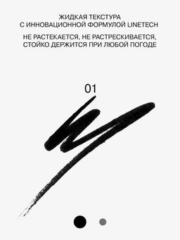 Характеристики Цвет: №01 BLACK / ЧЕРНЫЙ Объем: 0.5ml Описание Лайнеры с инновационной формулой LINETECH не растекаются при нанесении, моментально фиксируются на коже, стойко держатся вне зависимости от температурных и погодных условий и не трескаются. Фетровым аппликатором с тонким пластичным кончиком удобно рисовать идеально ровные стрелки. Способ применения Встряхните подводку перед использованием. Наносите аппликатором тонкой линией у основания ресниц.