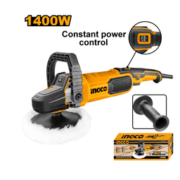Полировальная машина Ingco AP140028 Тип: Сетевая Напряжение: 220-240 В Мощность: 1400 Вт Скорость холостого хода: 900-3800 об/мин Особенности: Регулировка скорости, диск 180 мм.