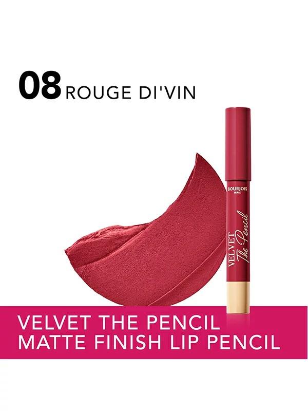 Характеристики Цвет: №08 ROUGE DIVIN Объем: 1.8gr Описание Помада-карандаш Bourjois Velvet The Pencil придает губам идеальную форму. Веганская водостойкая формула без компонента D5 обеспечивает комфорт и стойкость цвета. Бархатистая текстура тает при соприкосновении с губами и не создает ощущения тяжести в течение дня. Благодаря инновационному дизайну помада обеспечивает легкое и точное нанесение высокопигментированной текстуры с окончательным матовым эффектом. Подчеркните свои губы в одно мгновение! Способ применения Нанесите помаду на губы и равномерно распределите ее по поверхности обеих губ.