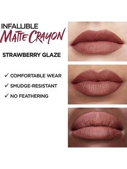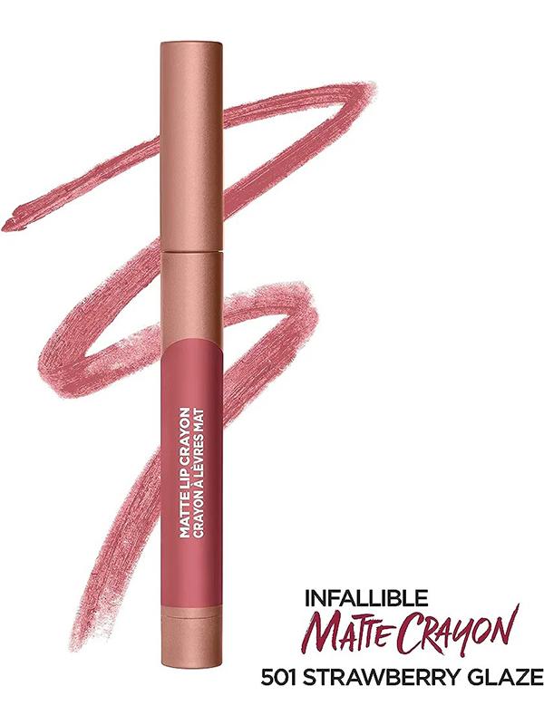 Характеристики Цвет: №501 STRAWBERRY GLAZE Объем: 1.3gr Описание Matte Lip Cryon Infaillible – новое поколение матовых помад в удобной форме стика. За счет формы аппликатора подчеркивает контур губ без использования карандаша. Яркие пигменты заполняют губы цветом даже при нанесении в один штрих. Цвет, который держит обещание! — насыщенный цвет с матовым финишем в течение всего дня — легкое нанесение благодаря скошенному кончику — механическая ручка избавляет от необходимости затачивания — формула обогащена маслом семян жожоба, подсолнечника и витамином Е для увлажнения и комфорта Способ применения Обведите контур губ, заполните помадой область внутри границ.