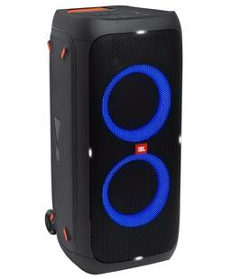 Домашняя аудиосистема JBL PARTYBOX 310 представлена одной большой колонкой, объединяющей несколько устройств в одном по принципу All-in-One. В корпусе модели соединились караоке, аудиопроигрыватель, светодиодная подсветка и вход для гитары. Приобретая одну такую аудиосистему, вы будете иметь все необходимое для вечеринки в одном корпусе весом 17 кг. Для удобства транспортировки она получила колесики в основании и выдвижную ручку в верхней части. Работать акустика может как от электросети, так и от собственного аккумулятора. В последнем случае время функционирования домашней аудиосистемы JBL PARTYBOX 310 достигает 18 ч. Этого хватит даже для самой долгой вечеринки с танцами, песнями под гитару и караоке! А для дополнительного веселья можно включить светодиодную подсветку.
