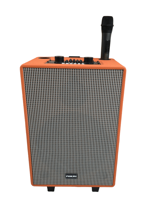 Портативная акустическая система Nikai — это идеальное решение для любителей качественного звука, караоке и активного отдыха. Выполненная в стильном ретро-дизайне с ярким оранжевым корпусом из текстурированного материала, эта колонка станет не только источником музыки, но и ярким акцентом в интерьере. Мощный динамик, защищенный классической тканевой решеткой, обеспечивает чистое и глубокое звучание. Основные преимущества: Мобильность: Компактный размер и удобная форма позволяют легко брать колонку с собой на пикники, вечеринки или презентации. Беспроводной микрофон: В комплекте идет качественный беспроводной микрофон, который идеально подходит для караоке, выступлений или ведения мероприятий. Полный контроль звука: На верхней панели расположены аналоговые регуляторы для точной настройки громкости, частот и эффектов микрофона. Современные интерфейсы: Поддержка Bluetooth для беспроводного подключения, а также разъемы для USB и карт памяти. Автономность: Встроенный аккумулятор большой емкости обеспечивает долгие часы работы без подзарядки.