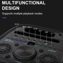 Общие характеристики Модель - ZQS 8307 Тип колонки - активный; коаксиальный; компонентный Вид колонки - напольные Память - Тип карты памяти microSD - Питание Питание - от аккумулятора Тип аккумулятора - Li-Ion Емкость аккумулятора - 4500 мА*ч Время зарядки - 2 часа 45 минут Время работы от аккумулятора, до- 15 ч 30 мин Связь Беспроводные интерфейсы - Bluetooth 5.0; FM/AM Акустическая система Акустический тип - 5.1 Расположение регуляторов звука- на верхней панели Материалы Материал корпуса - пластик Дополнительная информация Совместимость - Xiaomi Redmi 9A; AppIe Iphone 13; Samsung Galaxy A10; Samsung Galaxy A15; oppo A54 Совместимые ОС - Android; iOS Доп. опции колонок- Bluetooth; FM Страна производства - Китай Комплектация - колонка; микрофон; Пульт д/у