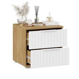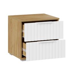 Прикроватная тумба Хилтон (Дерево/Белый) Компактная прикроватная тумба из коллекции «Хилтон» — это изящный и функциональный элемент вашей спальни. Сочетание текстурного корпуса под светлое дерево и белых фасадов из МДФ с декоративной резкой придает интерьеру свежесть и современный уют. Модель оснащена двумя выдвижными ящиками для удобного хранения личных вещей, книг или журналов. Особое внимание уделено деталям: специальный вырез под плинтус позволяет установить тумбу вплотную к стене, экономя пространство. На широкой верхней поверхности легко поместятся лампа, любимое фото и чашка кофе. Основные характеристики: Материал корпуса: ЛДСП с текстурным покрытием под дерево. Материал фасадов: Высококачественная МДФ (Белый цвет) с резьбой. Конструкция: 2 выдвижных ящика. Особенности: Наличие выреза под плинтус для плотного прилегания к стене. Размеры: Высота: 45 см. Ширина: 45 см. Глубина: 40 см. Доставка и установка: Бесплатно по городу Ашхабад.
