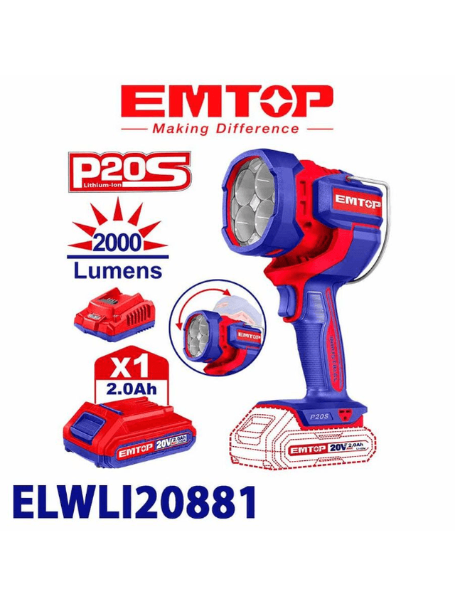 Профессиональный аккумуляторный светодиодный рабочий фонарь EMTOP ELWLI20881
