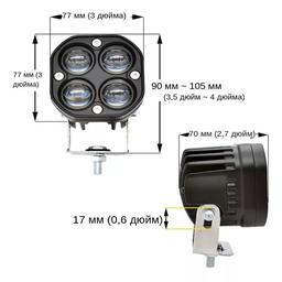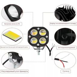 Компактная, но яркая светодиодная фара дальнего света.Используется как дополнительная фара к рабочему свету; увеличивает видимость в несколько раз в туман, дождь, ночью и сумерках. Светит фара прожектор ярким дальним пучком белого света. Мощность led фары 40 ватт. Мощность :40W/ станция (1) Люмен: около 4000 люмен/платформа Напряжение продукции :10V- 30V(применимое к 12V - 24V) Профиль корпуса: алюминиевый сплав, отлитый под давлением Объектив: оптические линзы PC Температура: 3000k 6000k Светлый цвет: яркий белый свет + низкий янтарь/жёлтый Рабочая температура: 4085 градусов по цельсию Показатель водонепроницаемости :IP68
